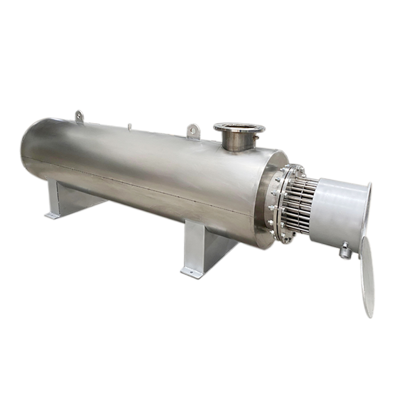空氣加熱器是主要對氣體流進行加熱的電加熱設備。空氣加熱器的發熱元件為不銹鋼電加熱管,加熱器內腔設有多個折流板,引導氣體流向,延長氣體在內腔的滯留時間,從而使氣體充分加熱,使氣體加熱均勻,提高熱交換效率。空氣加熱器的加熱元件不銹鋼加熱管,是在無縫鋼管內裝入電熱絲,空隙部分填滿有良好導熱性和絕緣性的氧化鎂粉后縮管而成的。當電流通過高溫電阻絲的時候,產生的熱通過結晶氧化鎂粉向加熱管表面擴散,再傳遞到被加熱空氣中去,以達到加熱的目的。